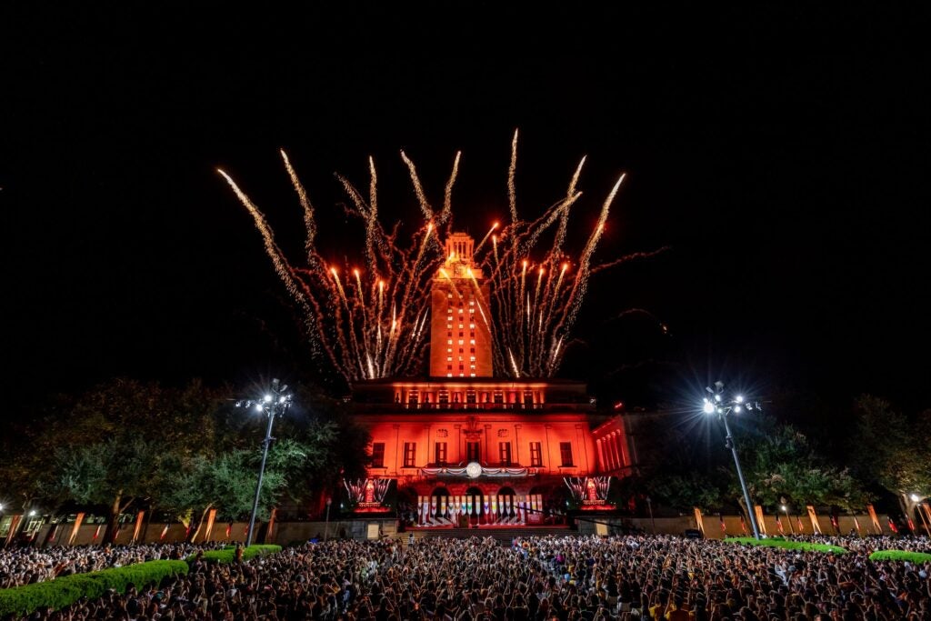The last time the Tower displayed “25” on its sides was to celebrate the Class of 2025 as incoming students to the Forty Acres, when they all gathered on the Main Mall in Fall 2021 for the Gone to Texas celebration.